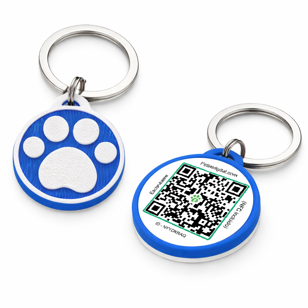 La Placa de Identificación Digital combina diseño moderno y tecnología para mantener a tu mascota siempre protegida. Fabricada en PLA resistente, soporta humedad y radiación UV, y gracias a su impresión 3D es ligera y duradera. Incorpora NFC y código QR, permitiendo acceder fácilmente a la información de tu mascota en caso de extravío. Su diseño de huella en color azul destaca por su estilo y visibilidad. Hecha en Colombia con materiales de calidad para brindar seguridad y tranquilidad.