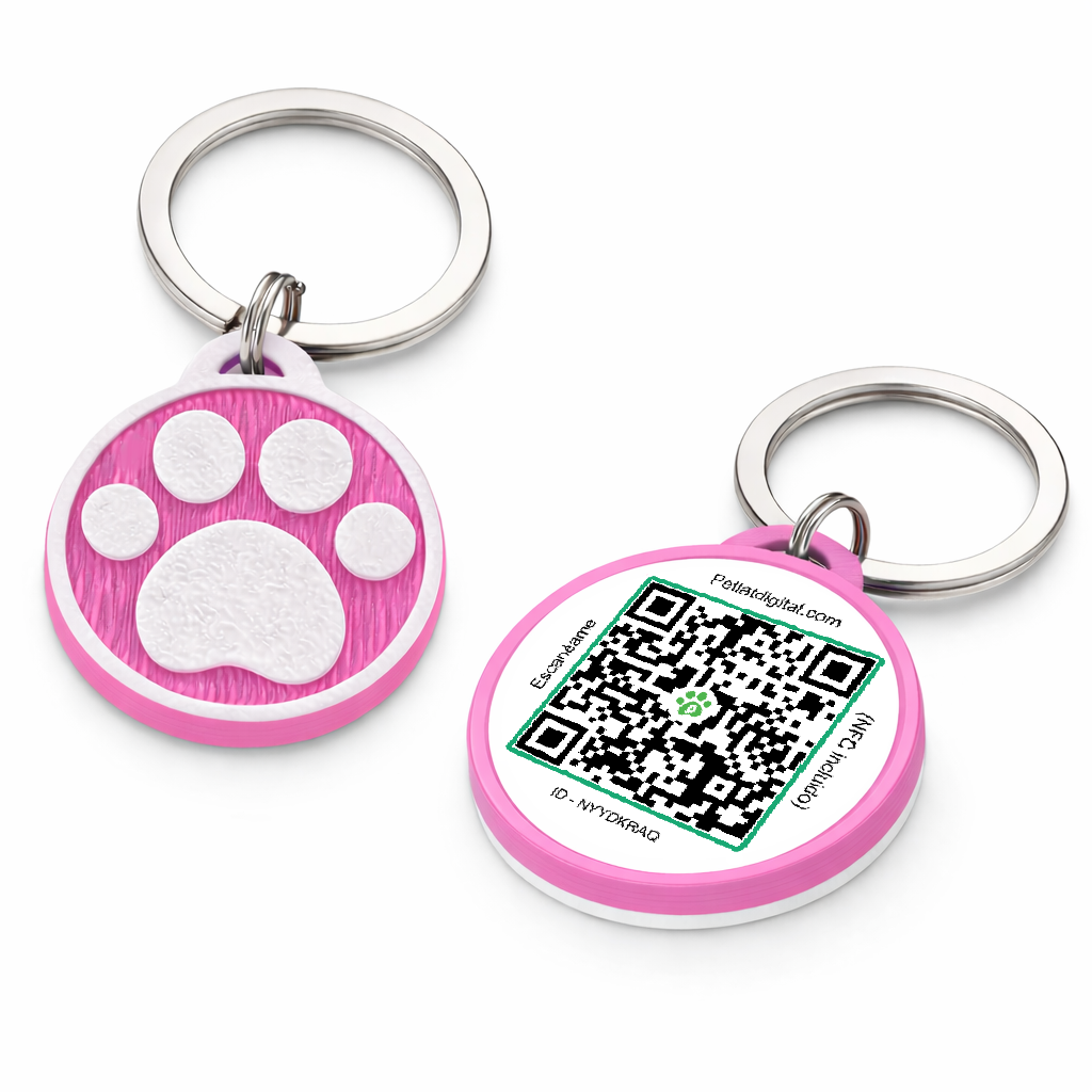 La Placa de Identificación Digital combina diseño moderno y tecnología para mantener a tu mascota siempre protegida. Fabricada en PLA resistente, soporta humedad y radiación UV, y gracias a su impresión 3D es ligera y duradera. Incorpora NFC y código QR, permitiendo acceder fácilmente a la información de tu mascota en caso de extravío. Su diseño de huella en color Rosa destaca por su estilo y visibilidad. Hecha en Colombia con materiales de calidad para brindar seguridad y tranquilidad.